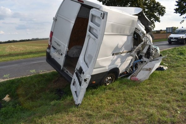 Az ütközés miatt a furgon az út melletti árokba hajtott, aztán fának csapódott és végül az oldalára borulva állt meg. A sofőr és az utasa megsérült, őket a mentők kórházba szállították.