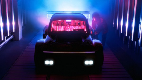 A stílus egyszerre retró és versenyautós, amit némi modern felütéssel tálalnak. Ott van például a komikusan nagy hátsó szárny és a hatalmas szélesítések, amik a sportos hangulatra rezonálnak, illetve visszakacsintanak a régi Renault 5 Turbóra is. A klasszikus hatást a régi kaszni vonalai és a hangsúlyos neonfényekkel kivilágított tálalás adják.