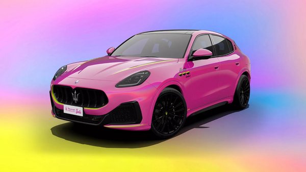 Persze ahogy várható, a Barbie Grecale rózsaszín. Nagyon rózsaszín. A szín az autó egész külsején meghatározóan uralkodik, viszont hogy ne olvadjon be az utca szürke tömegébe, kapott egy kiegészítő rikító sárga csíkozást, illetve néhány Barbie logót és feliratot is, hogy teljes legyen a kép. A fekete bőrbelsőt, rózsaszín kontrasztvarrással és Barbie feliratú fejtámlákkal dobták fel.