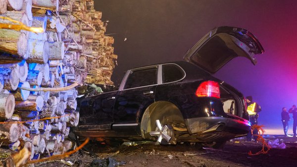 A 444 szúrta ki az MTI-n, hogy ismét a Porsche legnagyobb termékét választották a bűnözők is, hiszen egy lengyel rendszámos fekete Cayenne épp Kiskunhalastól nem messze, Zsana közelében rongyolt egy hatalmas útmenti farakásba, tizenöt emberrel a fedélzeten.