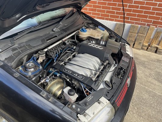 Valakinek rendesen elgurulhatott a gyógyszere, amikor megálmodta, hogy a B6-os Audi S4 4,2 literes V8-asát faragja be a kisautó orrába. Végül sikerült cipőkanállal beilleszteni, arról nem szól a leírás, hogy egészen pontosan mit és hogyan kellett ehhez módosítani, de egészen biztosan volt vele meló. A nyolchengeres motorhoz a Golf VR6 váltóját párosították, és a sperrdifiről sem feledkeztek meg.
