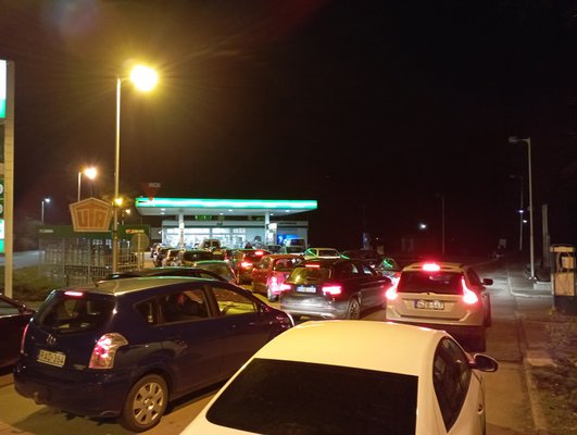 19:45 - MOL 8. ker., Hős u. 9 - csak 95-ös benzin, fél órás sorban állás