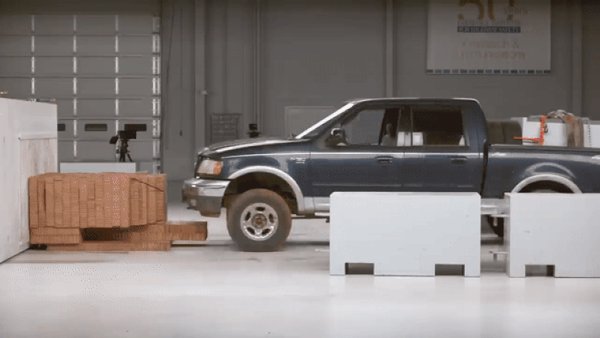Ennek kipróbálásához az IIHS szakemberei 4300 kilós össztömegig pakoltak egy pickupot, majd megnyomták a piros gombot. A teszt sikerrel zárult, a tesztjármű a kellő sebességgel csapódott a falnak, és nem is maradt belőle túl sok.