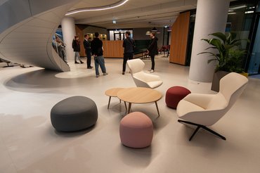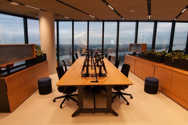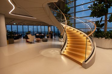 Látszik, hogy az egész székház belsejénél az volt a fő szempont, hogy rendkívül nyitott legyen. Ez, úgy tűnik, hogy sikerült is, a terek kellően szellősek és az emberek sem kicsi kalitkákba zárva, egymástól elszeparálva fognak dolgozni. Menő, hogy a sok üvegfelület miatt a munkaállomások 86 százalékban természetes fényt kapnak, ez vélhetően sokat segít majd az itt dolgozó emberek komfortérzetén. Belőlük lesz bőven: 2500-an fognak beköltözni a székházba, a munka nemsokára meg is kezdődik.