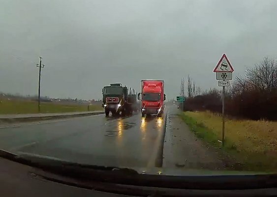 Most a BPiautósok Youtube-csatornájára került fel egy olvasói felvétel, amin láthatóan teljesen rosszul mérte fel a piros teherautó sofőrje, hogy mennyi helyre és időre van szüksége a másik teherautó megelőzéséhez. A videón jól látszik, hogy teljesen esélytelen, hogy a piros Iveco visszaérjen a sávjába, ezért a szemből érkező autónak nem volt elég lassítania, hanem le is kellett húzódnia az útpadkára, hogy elkerülje a csattanást.