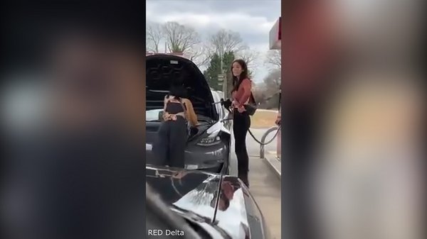 Aztán az egyik nő elmondja, hogy ez igazából a barátja autója és nem tud róla sokat. Meglepetten fogadja a videós srác mondandóját a Teslák jellegéről és elsőre úgy fest, hogy el is fogadja a hallottakat. Végül azonban mégse így lett: az első csomagtartóban talált egy helyet, ahova be tudta szúrni a pisztolyt – valószínűleg az ablakmosó töltőnyílásáról lehet szó – és bele is tankolt valamennyi benzint.