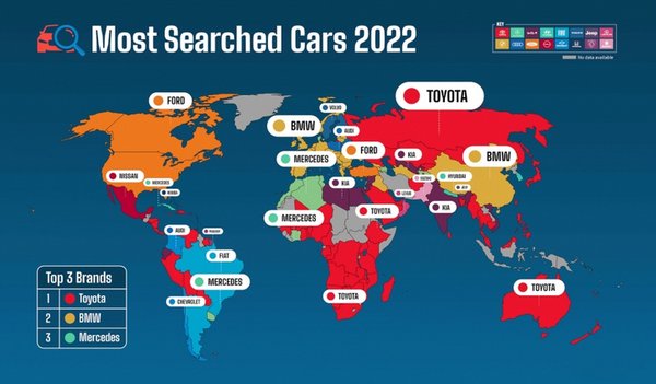 A piaci eloszlásra a Compare the Market szervezet felmérése is ad egy kis rálátást. Ők azt vizsgálták, hogy melyek azok az autós márkanevek, amikre a legtöbben kerestek rá adott területeken. Eszerint a Toyota keresőszóra elsősorban Közép- és Kelet-Ázsiában, Dél-Afrikában és Ausztráliában keresnek rá az érdeklődők, míg nálunk az európai nevek állnak az előtérben.