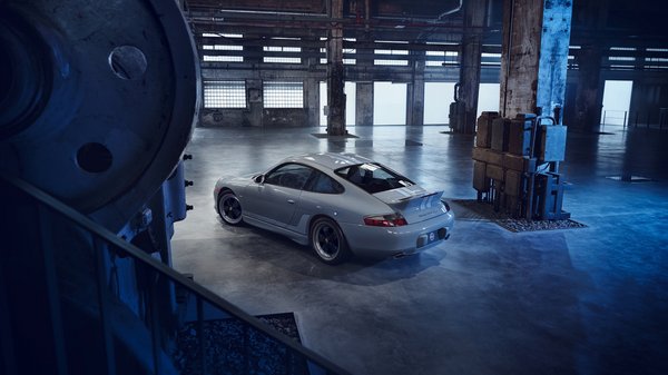 Nem egy ellazázott felújításról volt szó, hiszen az autót szétkapták, kimerevítették, majd a farába beszerelték a GT3 381 lóerős, 3,8 literes hathengeres bokszermotorját. Olyan finom részletek is árulkodnak az építés komolyságáról, mint a múltidéző hátsó kacsaszárny, amit szélcsatornában teszteltek, nem csak felszereltek.