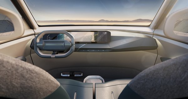 A belső egyelőre még nagyon koncepcióautós, de látszik, hogy hasonló, mint az EV9-esé, így valószínű, hogy mire a szériagyártásig eljut az EV5, annak is hasonlóvá szelídül majd a beltere. Mindenesetre az újabb, elektromos BMW-k nappalis hatású belterét idéző megoldások elég jól néznek ki az előzetes képeken.