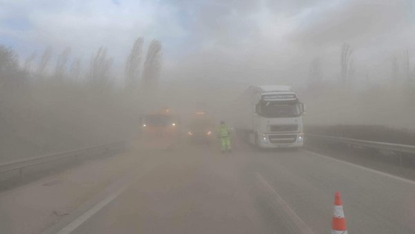 Az M1-es autópályán a 104-es km környezetében Nagyszentjános/Bőny térségében az erős széllökések miatt időnként sűrű por és homokfelhő rontja a látási körülményeket. Vegyék komolyan a figyelmeztetést és időben lassítsanak!