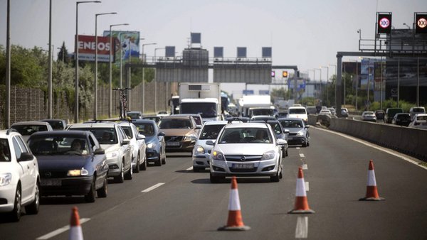 Tatabánya térségében egy sávon halad a forgalom Győr irányába.