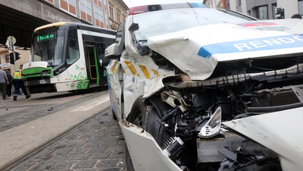 A rendőrautó egy Tiszai pályaudvar felé haladó villamossal ütközött össze, amely a baleset következtében letért a pályájáról.