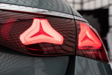 Az AMG Line csillagokkal megszórt fekete hűtőrácsa és a hasonló tematikájú hátsó lámpák ugyan inkább Kínának készültek, mint Európának, mégis jobban állnak a W214-nek, mint az Exclusive Line bővített króm csomagja, amit egyébként szintén imádnak keleten. Összességében egy letisztult három dobozos dizájn ez, melynek légellenállási együtthatója sem lett rosszabb annak ellenére, hogy a frontális felület, magyarul az orr egy picit nőtt.