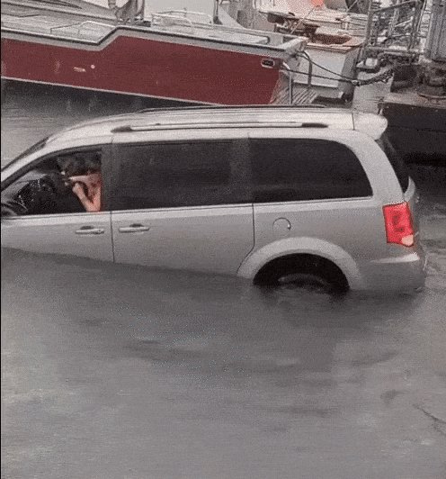 A bérelt Dodge Caravant vezető hölgy ugyanis, bár egy part menti turistalátványosságot igyekezett megtalálni, mégis belőle vált szenzáció. Az autóban ülők az mondták, ők csak a GPS utasításait követték, amikor vízbe vezették járművüket. Egy szemtanú beszámolója szerint az autó „elég nagy” sebességgel, magabiztosan hajtott a vízbe. Szerinte az autóban utazók annyira biztosak voltak abban, amit csináltak, hogy akkor is mosolyogtak, miután kiszálltak a süllyedő járműből.