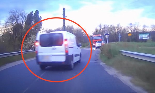 Elég jó tempóban letudta a két autó előzését, de közben két problémával szembesült: egyrészt közeledik a vasúti átkelő, ami előtt ráadásul kanyar van, másrészt viszont egy kamion is érkezett szemből. Nagyot nem fékezhetett a szemből érkező veszély miatt, ezért inkább tempósan átveretett a síneken, és reménykedett, hogy a furgon kimozogja.
