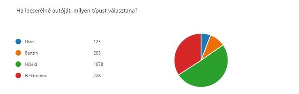 Az üzemanyaghiány viszont nem azt érte el, hogy az emberek azon gondolkozzanak, hogy lemondanak-e az autóikról, hanem inkább azon gondolkoztak, hogy villanyautóba ülnének. A válaszadók 60 százaléka gondolkozott ilyen váltáson. Viszont ez csak egy perverz gondolat volt, ugyanis ha már tényleg az a kérdés, hogy milyen típusú autóra váltanának, akkor már a válaszadók csaknem fele hibridet választana.