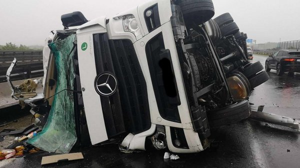 Az M0-s autóút déli szektorán, az M5-ös autópálya felé vezető oldalon, az M7-es autópálya csomópontjában a 3-as km-nél korábban egy kisteherautó és egy kamion ütközött össze, aminek következtében a teherautó felborult. A forgalmat a pályával párhuzamosan futó kollektor ágra terelik, a torlódás több km-es, a sor visszanyúlik már az M1-es autópályára is, ahol már a 27-es jelű Herceghalom csomóponttól Budapest irányába érzékelhető lassulás. Aki teheti Herceghalomtól az 1-es főutat válassza Budaörsig, - de ott is szakaszos lassulásra készüljenek - , onnan az M7-es autópályán vagy Törökbálinton keresztül érhető el az M0-s autóút. Az ellenkező oldalon, az M1-es autópálya irányába a belső sávot megnyitották, de a torlódás lassan oszli