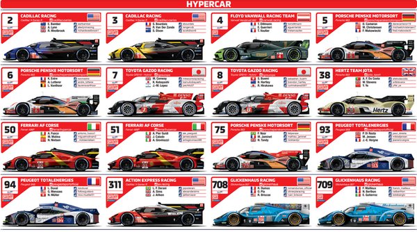 Most hétvégén Le Mans-ban az egyelőre leggyorsabbnak bizonyuló Ferrari 449P megy a Porsche 963, a Peugeot 9X8, a Toyota GR010 Hybrid, a Cadillac V-Series R és a Glickenhaus 007 ellen, már ami a Hypercar kategóriát illeti.