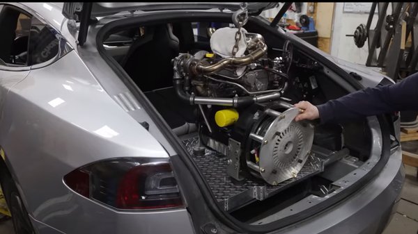 Adott volt tehát egy Tesla Model S P85D, aminek hátuljába egyszerűen egy generátorként működő turbódízel motort építettek. A beszámolók szerint a célt annak ellenére sikerült elérni, hogy a házilag turbósított és a csomagtartóba épített, körülbelül 25 lóerős motor az elégtelen hűtés miatt túlmelegedett, ezért teljesítményének csupán körülbelül 80 százalékát tudta leadni, ezáltal az eredetileg becsültnél csak lassabban tudta tölteni az autó akkumulátorát.