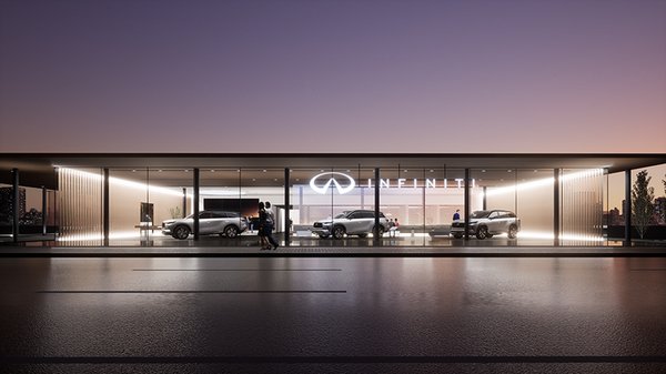 Ahol a márkanév is látszik, például a kereskedések homlokzatán, a felirat is változik: a márka nevét egymástól távolabbra lévő betűkkel írják le. Ez a megoldás meglehetősen hasonlít az első logóváltozatra. A változást hátterében a cég tájékoztatása szerint az áll, hogy az Infinitiket áruló autószalonokat is át akarják alakítani, mégpedig a japán „Ma” filozófianevében. Ez a dolgok közötti helyről szól. A nyugati kultúrában ismert minimalista felfogással szemben a„Ma” úgy tekint az üres helyre, mint ami képes függőséget teremteni azzal, hogy biztosítja a dolgok közötti egyensúlyt.