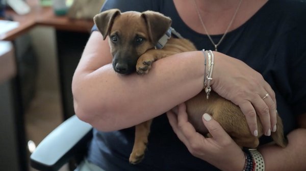 A cuki tacskó nagyjából két hónapos lehetett, és igencsak meg volt illetődve a hirtelen jött társaság láttán. Esős volt az idő, így aztán a kutyus átázott és fázott, így aztán a közutasok magukkal vitték, enni és inni adtak neki, végül pedig úgy döntöttek, hogy befogadják. Már kiépített kennel várta.