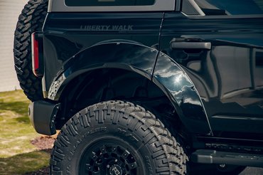 A Bronco is megkapta a maga Liberty Walk-os szélesítését, ami egy ilyen autónál kimondottan jól működik. Viszont a LW magához képest nagyon visszafogott volt a Bronco esetében, ugyanis a szett csak négy fenderből áll és nem olyan földtől elrugaszkodott, mint például a Daihatsu Copen GT-K szettjük.