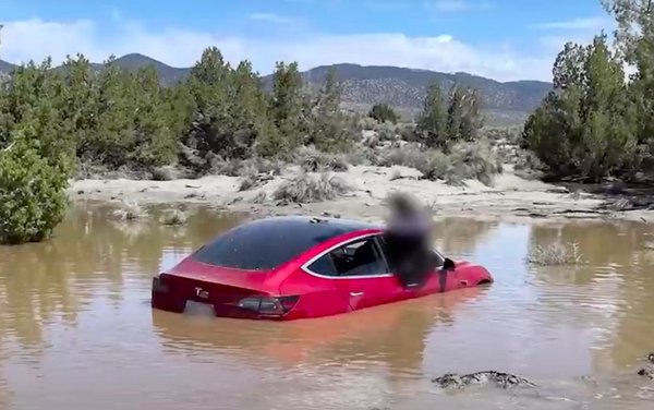 Az egy dolog, hogy az autó nem ismerte fel a táblát, és 60 mérföld/órával - 96 km/h-val - haladt tovább, de eközben a sofőrt se érdekelte az egész, és nem vette át az irányítást. Percekkel később ennek meg is lett a böjtje: a Model 3 nagy tempóval bevezette magát a vízbe. Az autó lassítás nélkül hajtott rá az elárasztott részre, felúszott a vízen, és végül egy mélyebb vízzel borított részen kötött ki.