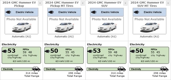 A márkák saját méréseinél reálisabb adatokat közlő EPA azonban nem ezt, hanem a kisebb, csupán 170 kWh-s akkuval szerelt modell változatait mérte le, nem mellesleg ez a kapacitás is elég lenne egy magyar családnak bő 3 hétre. Az SUV és a Pickup is szerepelt a méréseken, méghozzá mindkét kaszniváltozat kétféle kerékkel. Mindkettőt lehet kapni ugyanis 18 colos felnivel, amire terepgumikat szerelnek, illetve 22 colossal, amin utcai gumik vannak.