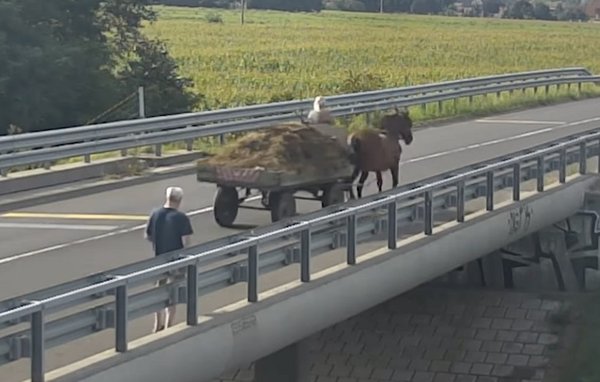Az nem derült ki, hogy hogyan keveredett oda, az viszont igen, hogy hogyan távozott: egy ma már nem túl gyakori közlekedési eszköz, egy lovaskocsi késztette távozásra.
