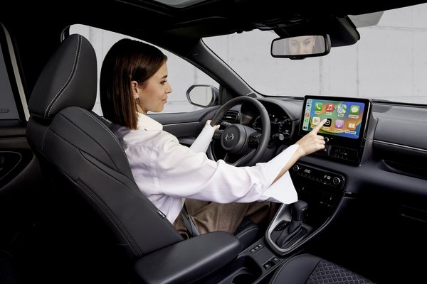 Bár a Mazda2 Hybrid továbbra sem tagadhatja valódi mivoltát, tény, hogy az új első lökhárítónak hála valóban lett egy kis mazdás íze, melyhez ráadásul néhány beltéri frissítés is társul. Ez a modell is megkapja a Toyota Yarisok új, 12,3 colos digitális műszeregységét, valamint a head-up display-t, és a 10,5 colos infotainment kijelzőt is. Utóbbi a legmagasabb, Homura Plus felszereltségi szinten az ár része, a panorámatetővel és a kétzónás klímával együtt. A belépőszintű Prime-line példányok csak 9 colos infotainmentet kapnak.