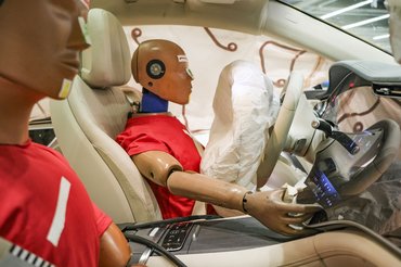 Az EQS SUV jobb első ülésében viszont a Hybrid III 50th Percentile bábut kötötték be, ami egy 78 kilós felnőtt férfi megfelelője. A gyerekeknek ebben a körben nem osztottak lapot.