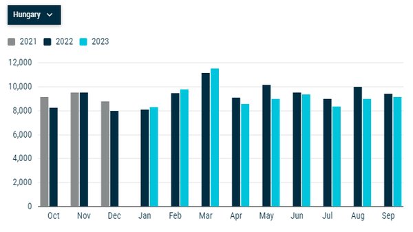 Ugyanis az ACEA adatai szerint Magyarországon az idei első kilenc hónapban 83 009 új autót helyeztek forgalomba, viszont tavaly ugyanezen időszakban ez a szám 85 766 volt. Vagyis eddig 3,2 százalékkal csökkent az új autó eladások száma. Ez a trend egyébként április óta tart, utoljára idén márciusban értékesítettek több új autót, mint tavaly.