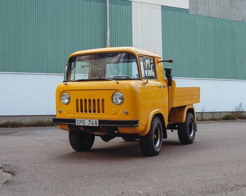Az FC-150-et 1956 és 1965 között gyártották, most pedig itt egy 1962-es példány, ami eladó. Az élénk sárga Jeepet a 2,2 literes motorral szerelték, amihez már a négyes manuál kapcsolódott. Ezt a darabot már felújították, és került bele pár extra is: ilyen például a fűtés, a tűzoltókészülék és a plusz tárolókrekeszek a fülkében.