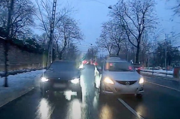 A Fiumei úton feszült egymásnak egy 3-as BMW és egy Mazda 6 sofőrje a napokban. A konfliktust valószínűleg az okozhatta, hogy az elfogyó sávban érkező Mazdát nem akarta beengedni a BMW.