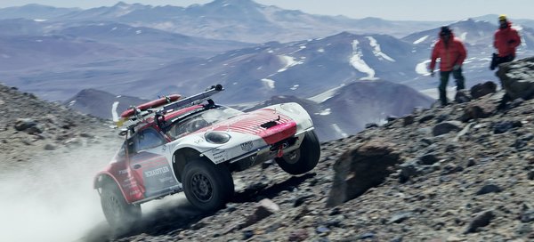 Az autót nem más, mint a háromszoros Le Mans-bajnok Romain Dumas vezette csapatával. Ilyen magasságban többek között olyan kihívásokkal is szembe kellett nézniük, mint a mínusz 20 fok és a ritkább oxigén.