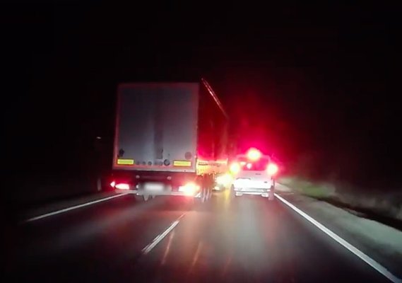 Az esetről videó is készült, amin az látszik, hogy miután a kamion még simán csak megelőzi a felvételt készítő autót, az utána következő furgonra viszont agresszíven ráhúzta a gigantikus jármű kormányát. A videó nem csak elsőre sokkoló.
