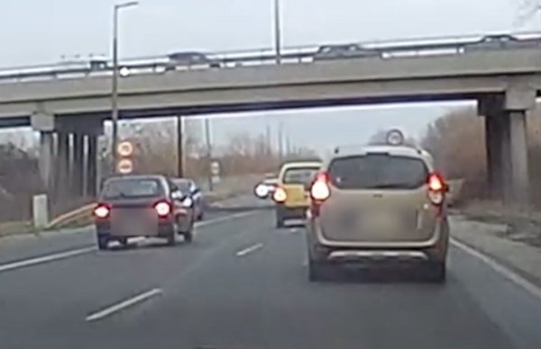 Most egy 5-ös BMW-t vett fel egy szabályosan haladó autós fedélzeti kamerája: úgy száguldott el mellette, mintha utóbbi állna.