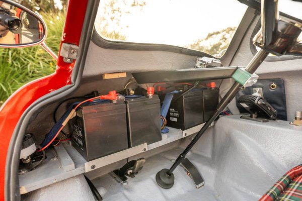 A leglátványosabbak az akkuk, amiket simán beszórtak az utastérbe, és bár kicsinek tűnnek, körülbelül 400 kilométeres hatótávhoz elegendő a kapacitásuk. Modern extra még például a tárcsafék is. Az elektromos P50 egyébként 2,72 lóerős, a végsebessége pedig 50 km/h.