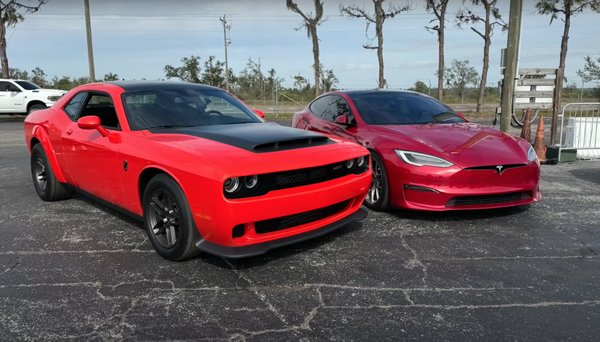 Az a szomorú hírünk van, hogy az amerikai izomautók hátsó kerekeire ágaskodó királya a papírforma ellenére is verhető: három futamból a Model S Plaid háromszor lenyomta. Az első két futam aránylag szorosnak bizonyult, a harmadiknál viszont a Dodge nem rajtolt túl jól.