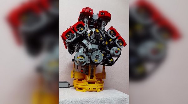 Ez a főleg Technic alkatrészekből álló motor a Ferrari 458 Italiába szerelt V8-ast mintázza, lenyűgöző részletességgel. A mozgó dugattyúk megléte alap, a négy forgó, szelepeket nyitogató vezérműtengely azonban jóval kevésbé jellemző. Szintén ritkán látott részlet a láncos vezérlés, amit a kis sárga pöttyökkel lehet jelre rakni, hogy minden stimmeljen.