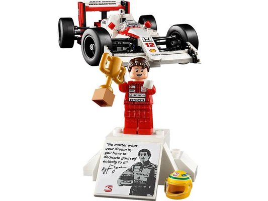 Arra is figyeltek, hogy a McLarent egyedi felnikkel és a slickekkel adják, hogy még élethűbb legyen. Természetesen a készlet része egy Ayrton Senna minifigura is, sőt, az autóhoz még egy állványt is adnak, amire felszerelve ki lehet rakni a polcra.
