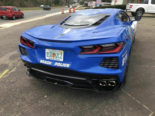 A Corvette ezután nem sokkal a rendőrséghez került, majd a Lightning Graphics Inc készített rá egyedi fóliát. A kék-fehér dizájn mellett a két ajtóra felkerült a Panama City Beach Police felirat, míg a hátsó sárvédőkre egy helyi dokk fényképét helyezték el.