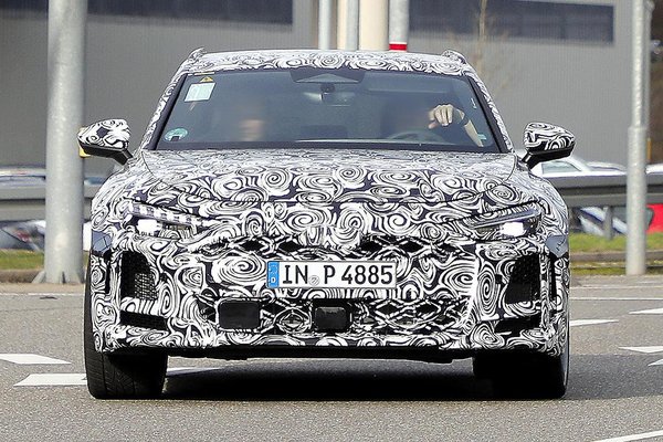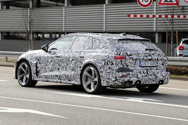 A gigantikusra szélesített sárvédőívek alatt hatalmas, ötágú felniket hordó Audi nagyon hasonlít a jelenlegi RS6-ra de az arányai alapján annál kisebb modellt rejt a matricázás. Eközben azt is érdemes figyelembe venni, hogy hivatalosan még nem erősítették meg az RS5 Avantot.