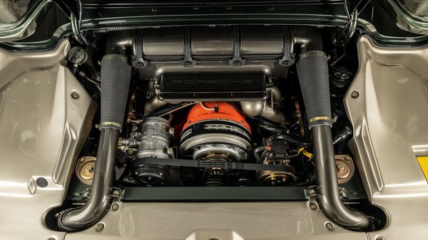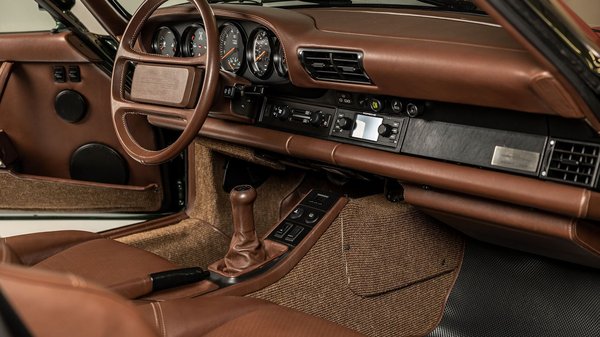 A Kaliforniában, Scotts Valley-ben lévő műhelyben alázatos, értő kezek nyúltak a már eleve izgalmas történetű, ritka 959-eshez. Az autót az utolsó csavarig szétszedték, átnézték, és mindent kicseréltek, amit kellett. A 959 Komfort a teljes renoválás végén kívül megkapta a lenyűgöző Porsche Oak Green fényezést, belül pedig mindent gyönyörű barna bőrbe húztak. Ezek a színek ugyan nem egyeznek az eredetiekkel, az biztos, hogy csodásan állnak az öreg Porschén.