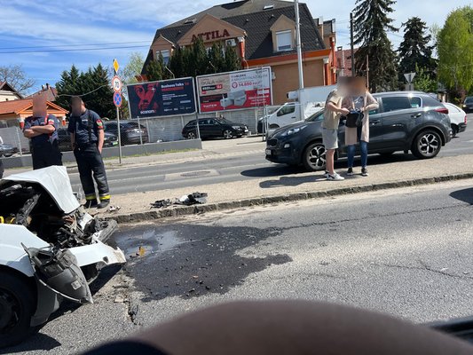 Összeütközött három személyautó Budapest III. kerületében, a Rákóczi utcában, azaz a 11-es főút belterületi szakaszán (közismertebb nevén a Szentendrei úton), az Attila utcánál.