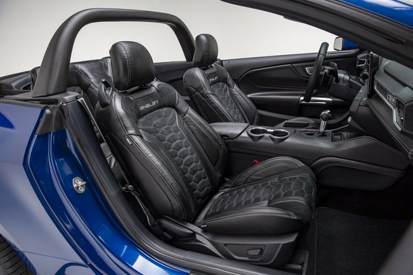 A beltérben a Ford feliratok és logók helyett a Shelbyé látható a bőr és Alcantara rengetegben.