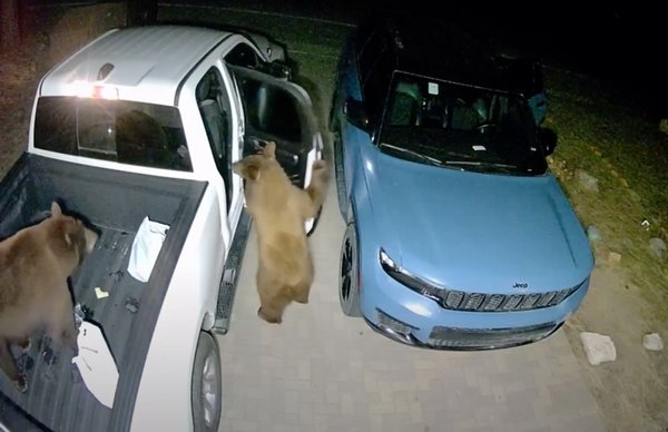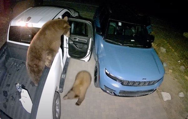 Utóbbira most egy remek példát is láthatunk: két, éhes medve simán feltört egy Jeep Grand Cherokee-t és egy Ram 1500-at a Tahoe-tó környékén. Az állatok ezúttal kimondottan békésen álltak a feladathoz: az egyik felmászott a nagy pickup platójára, a másik pedig finoman kinyitotta a Ram hátsó ajtaját, majd bemászott.