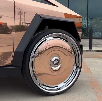 Úgy tűnik, hogy donk style-ban még mindig hisznek az emberek: mivel a fólia valószínűleg önmagában még nem lett volna feltűnő, felszereltek a Cybertruckra egy szett 30 colos Forgiato felnit is. Ezek színben rímelnek a fóliára. A felnik annak ellenére, hogy mennyire hihetetlenül nagyok, méretben nem is tűnnek annyira tájidegennek.