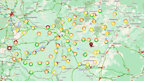 - szintén Soltvadkert közelében, a 40-es km-nél építési munka miatt félpályás lezárás van érvényben.