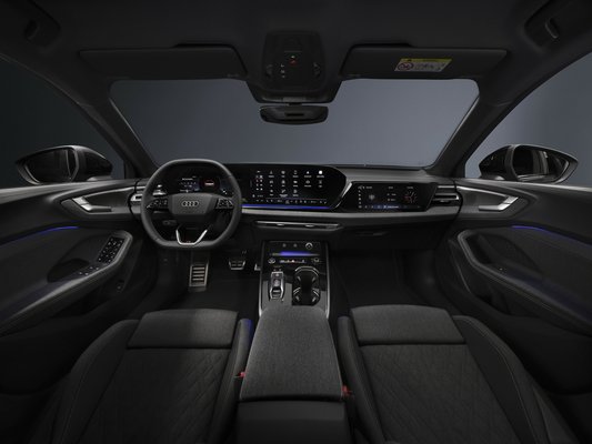 A belsőnél a mérnökök célja egy emberközpontú, tágas, kényelmes és átlátható utastér megalkotása volt. Ettől függetlenül a műszerfalat így is a hatalmas képernyők uralják. Az MMI nevű hajlított, OLED technológiás panorámakijelző két panelből áll: a sofőr előtt egy 11,9 colos „virtuális pilótafülke" kap helyet, míg az infotainment kijelző 14,5 colos. Ha ez a két tepsi nem lenne elég, az utasoldalra egy 10,9 colos harmadik képernyő is rendelhető.